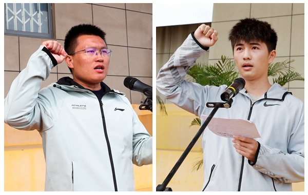 裁判员代表、体育学院教师王统领,运动员代表、信息工程学院学生吴乃文分别郑重宣誓。