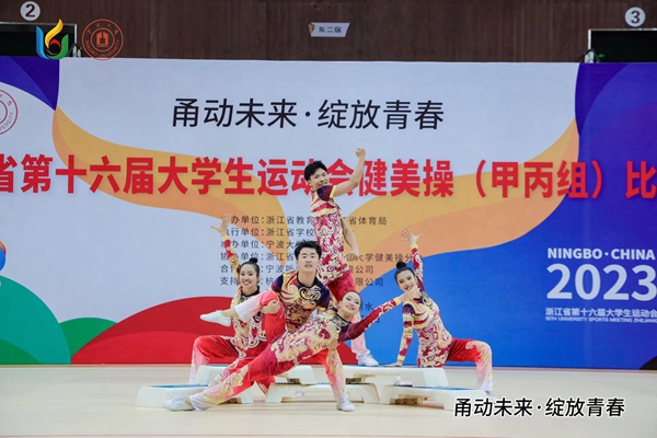 据悉,本次比赛由浙江省教育厅、浙江省体育局主办,宁波大学体育学院承办,浙江省学校体育协会大学健美操分会协办,共有来自全省54所高校的600多名运动员参赛。