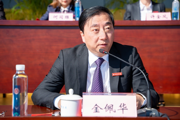 金佩华向承训部队赠送锦旗并代表学校向承训部队表示感谢,向从事军训组织和保障工作的各位老师致以诚挚问候,向2023级全体新生表示热烈祝贺。