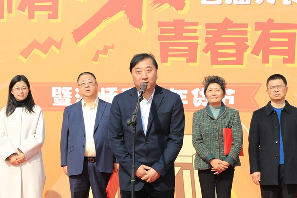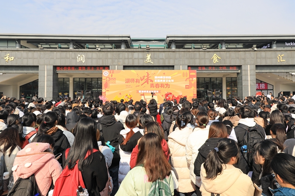 在现场师生们热烈欢呼声中,金佩华宣布我校首届美食文化节暨湖师惠选年货节开幕。