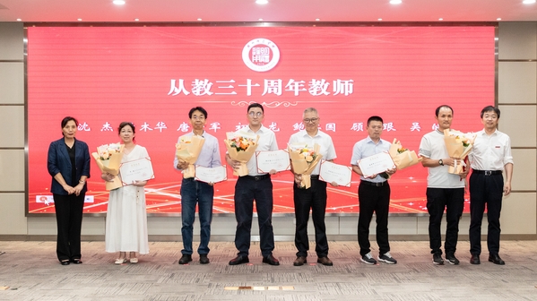 会上,校党委副书记陈永华宣读从教30周年教师名单。许慧霞、盛况为从教30周年教师颁发证书。